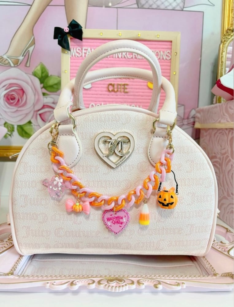 Get ready for Pinkoweem with this handmade Halloween Queen Purse Chain. This purse chain is the perfect pinkoween accessory for your handbag. It is handmade with beautiful neon pink and orange heart links with girly Halloween theme charms. It is a perfect statement piece for your favorite handbag.