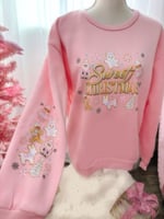 If you love all things Pinkmas than you need this adorable Sweet Christmas Sweater. This custom made sweater features adorable Christmas cookies on the front and on the right sleeve. This soft relaxed fit sweater will have you ready to cozy up for the holidays.